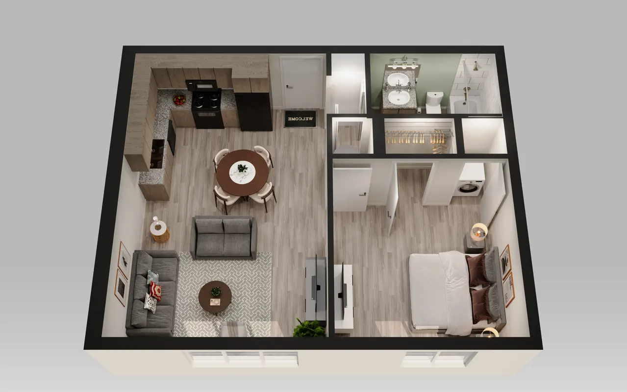 Floor plans are artist’s rendering. All dimensions are approximate. Actual product and specifications may vary in dimension or detail. Not all features are available in every apartment. Prices and availability are subject to change. Please see a representative for details. Deposit based on credit approval.